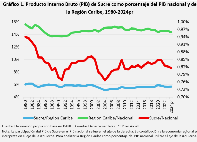 Ubicado en la llanura del Caribe, Sucre se distingue por su riqueza natural y diversidad cultural, así como por su base productiva sustentada históricamente en actividades primarias como la ganadería y la minería, y de servicios como los gubernamentales. Por esta razón, la articulación de sus recursos naturales, estructura productiva y tradición cultural lo convierten en un caso valioso para comprender las dinámicas del desarrollo regional (Bonet et al., 2024). Al analizar Sucre surge una pregunta clave: ¿Cómo se explica que un departamento con acceso al mar Caribe, ubicación estratégica en los corredores hacia el interior del país, y una de las más notorias riquezas culturales y ambientales del país, siga rezagado en productividad y estándar de vida de sus habitantes?